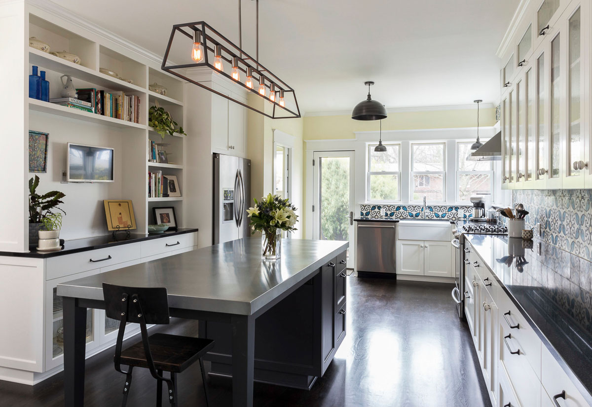 In the heart of Portland’s Historic Buckman neighborhood, named for a 19th century orchardist and known for its arts magnet school, is the site of our whole house remodel with two-story addition. Having lived in the four bedroom home for ten years, and loving it, the owners decided to bring modern function to their classic space. The project created a new flow, connecting the entertainers’ kitchen to the existing stone patio on the first floor and the master bedroom to a new master bath and walk-in closet on the second. The new retreat, complete with gas fireplace, allows you to circumnavigate the master suite, something highly unusual in older homes. However, the myriad built-ins and moldings, along with consistently stained new and refinished oak floors, create a seamless transition.